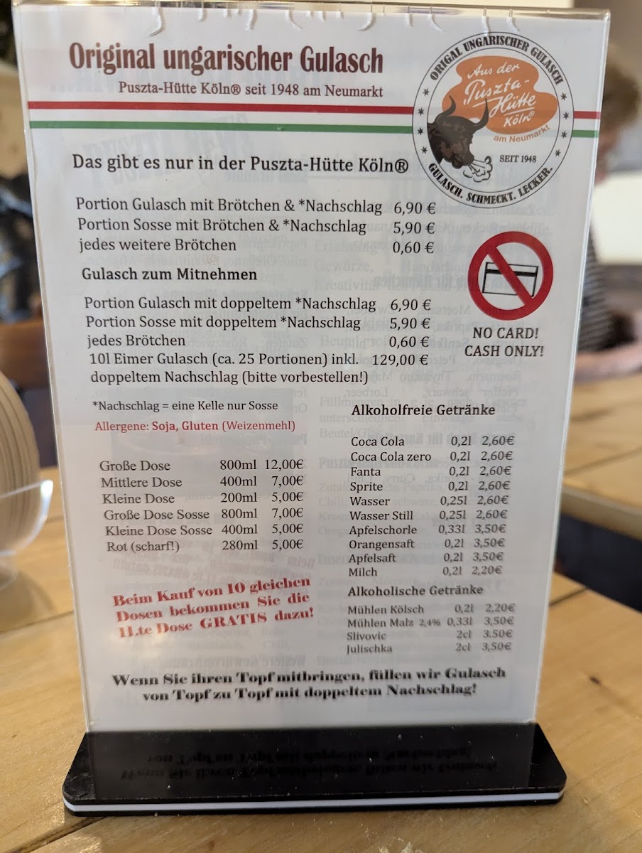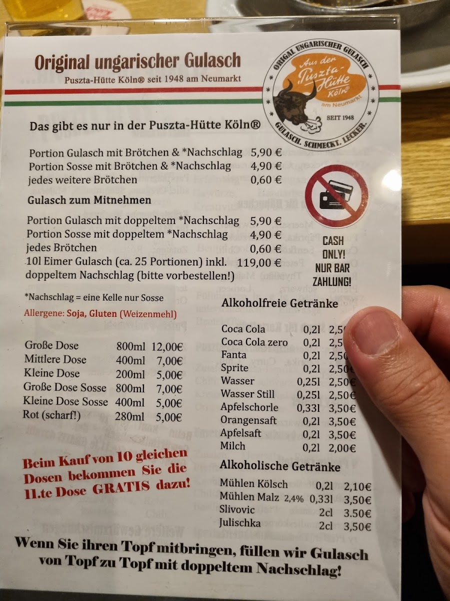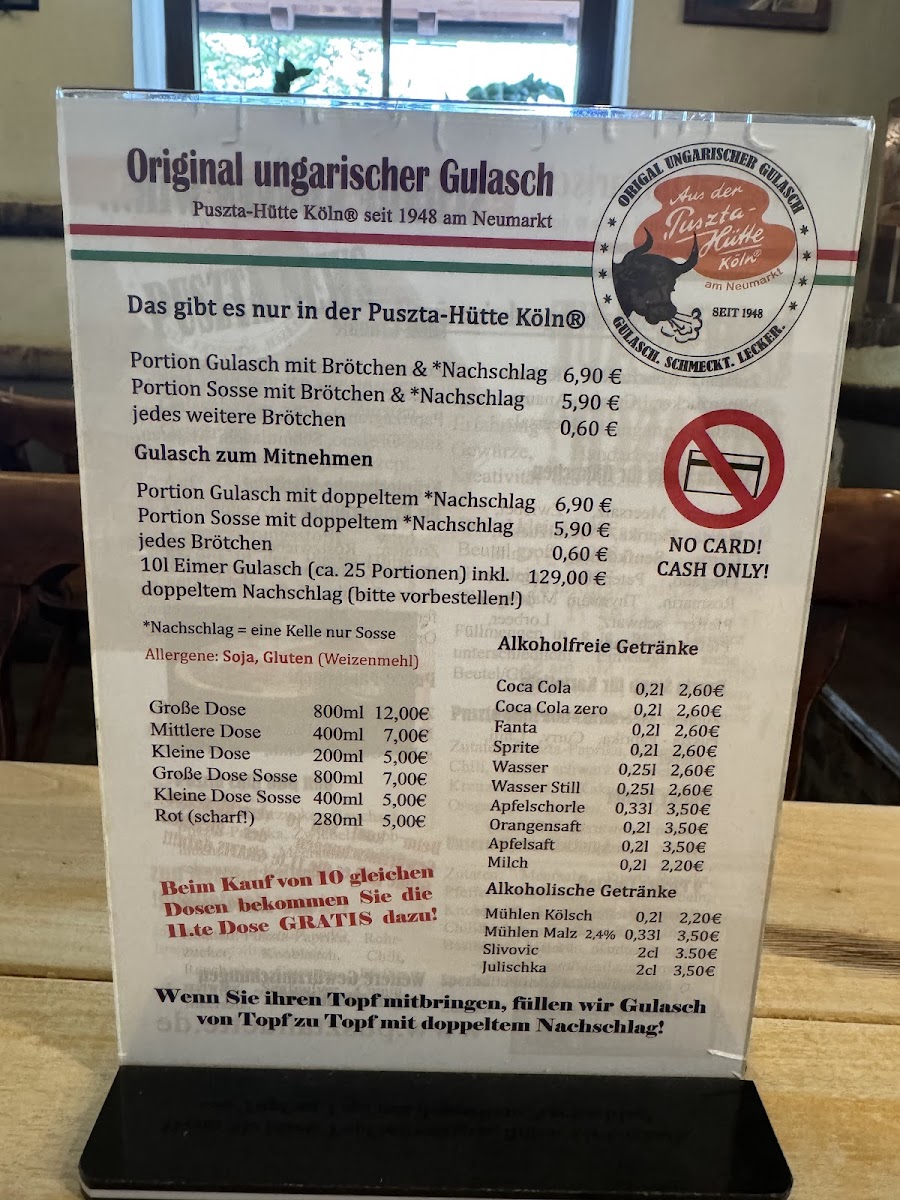 Value for Money: A goulash and a Kölsch beer for just €8, ensuring a fulfilling experience.